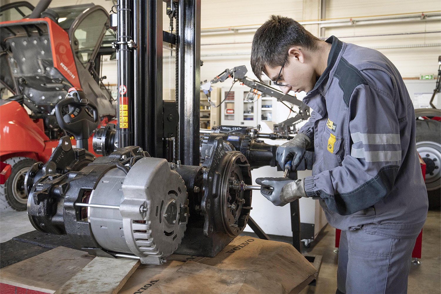 Mécanicien de matériels de travaux publics, de manutention et de levage, vous effectuerez la surveillance, la maintenance et le dépannage courant des organes mécaniques (moteurs thermiques et électriques, transmission, suspension, direction…), hydrauliques (centrale hydraulique, vérins, coupleurs…) et électriques (alternateurs, démarreurs, batteries…) de matériels de travaux publics (pelles hydrauliques, chargeuses, malaxeurs, compacteurs…) et de matériels de manutention et de levage (chariots élévateurs, grues, nacelles…)